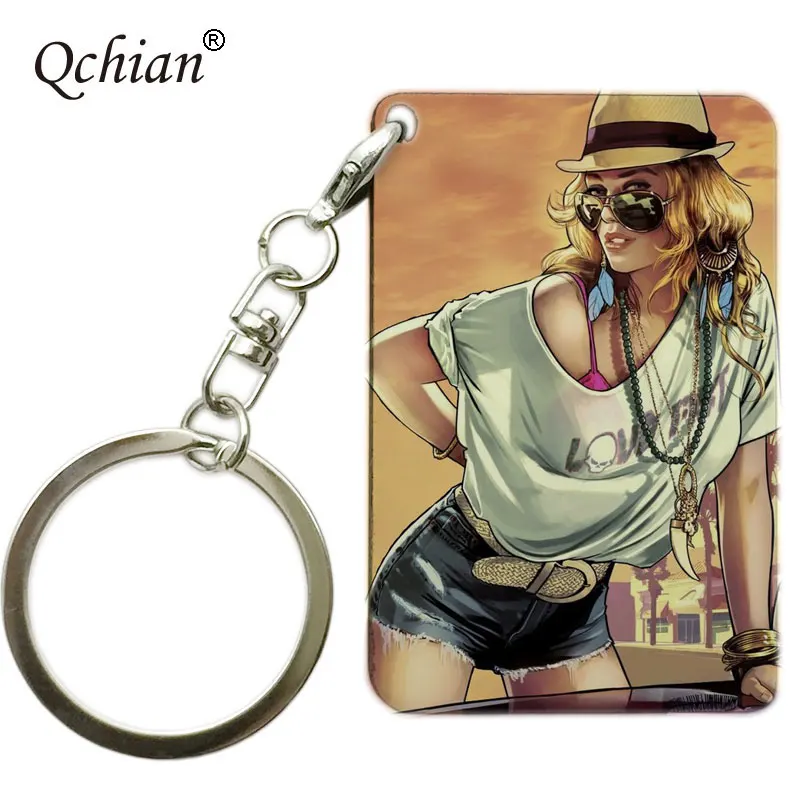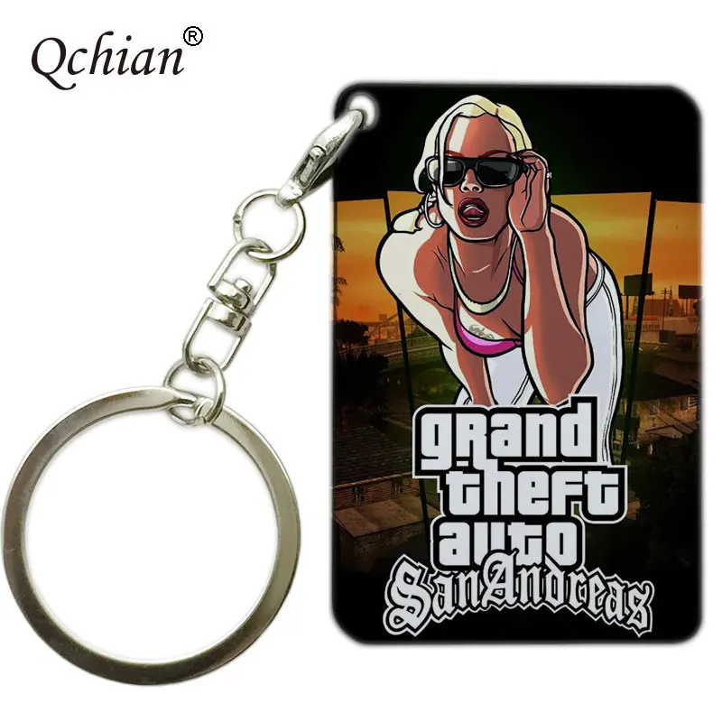 Collection Hot Game GTA Grand Theft Auto Keychain Key Chain For Fans Xbox PC Rockstar wooden Key Ring Holder J
