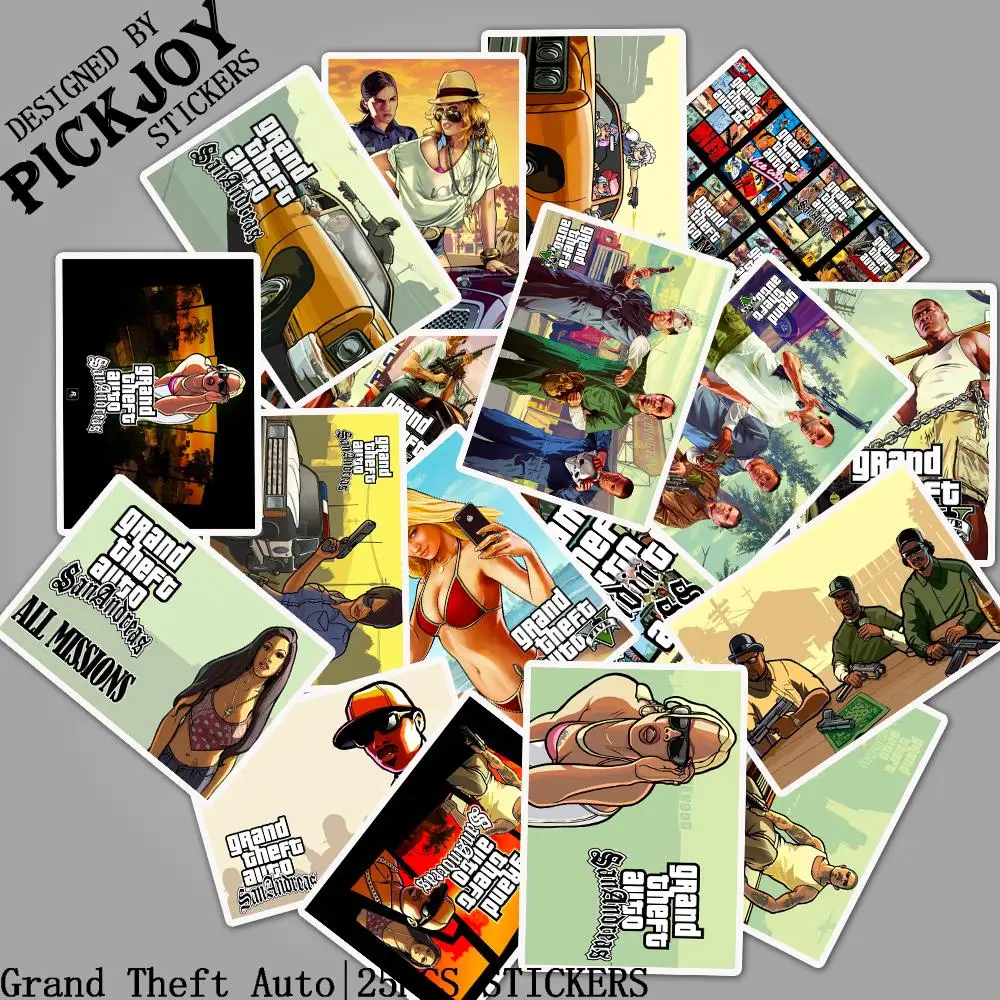 The Latest 25PCS/Pack Grand Theft Auto Stickers For Bar Luggage Skateboard Laptop Children Toy Waterproof Stic