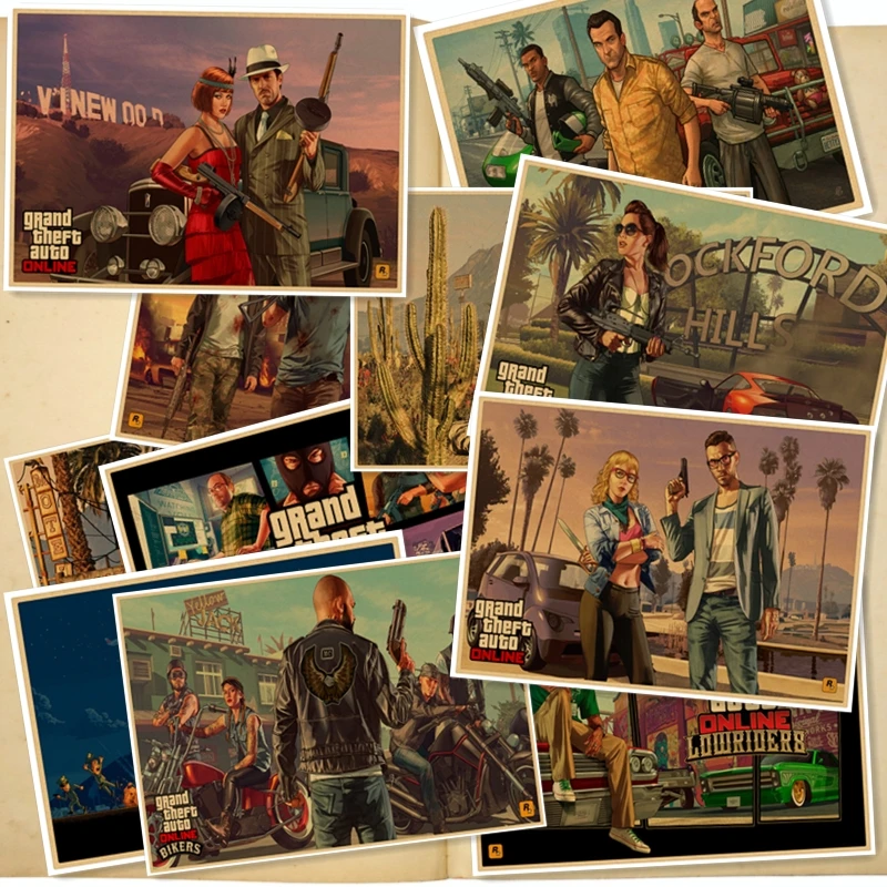 Post a Comment for "New Arrival New Grand Theft Auto V retro kraft paper Print vintage Poster Game Hot GTA 5 Images For Wall Decora "