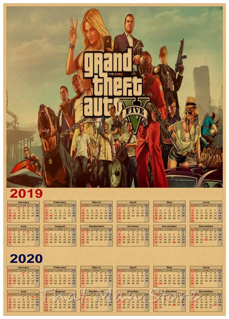 2019-2020 GTA 5 Grand Theft Auto San Andreas calendar poster Home Furnishing decorative white coated paper Wall Sticker 42*30CM :Click Here