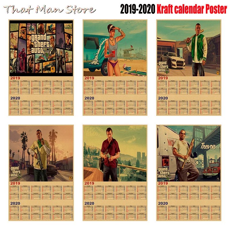 New Arrival 2019 2020 Kraft Paper calendar poster GTA 5 Grand Theft Auto San Andreas Decorative Paintings Home