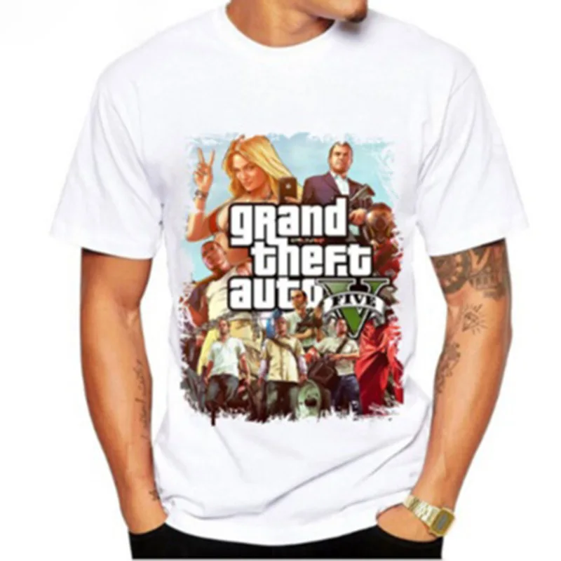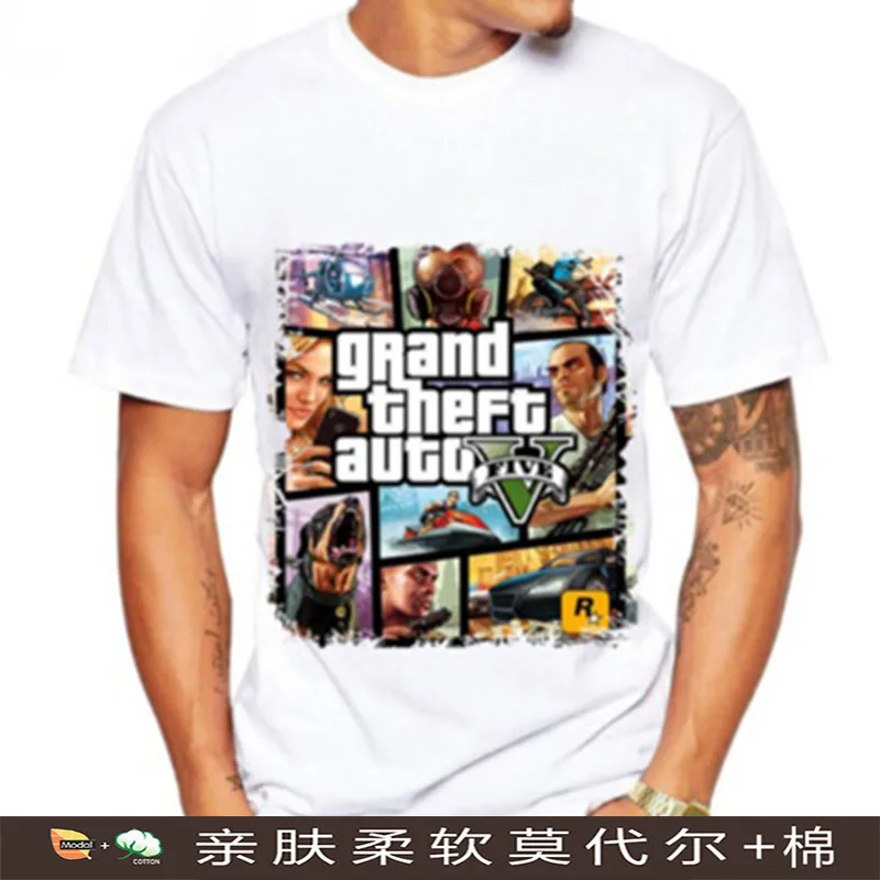 New MEN'S Short Sleeve Shirt Grand Theft Auto Teenager Loose-Fit Crew Neck Half Sleeve Shirt 2018 Summe